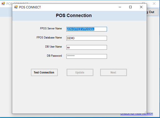 b. Enter the FPOS Database Name exactly as it is in DB Setup Example DEMO