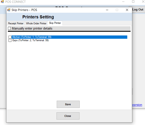 Example : Items that are set to print to 2 or more prep lines inside of FPOS Backoffice and you wish to skip printing to a prep line printer select which printer you wish to skip.