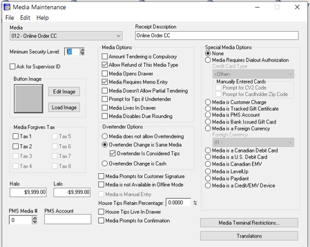 Media = Enter the Media number that was created in FPOS Backoffice which will be used to report all online credit card sales.